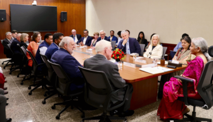 New Delhi– Union Finance Minister Nirmala Sitharaman on Monday met with a visiting U.S. delegation in New Delhi to discuss key geopolitical developments and shared strategic and economic interests within the India–U.S. partnership.